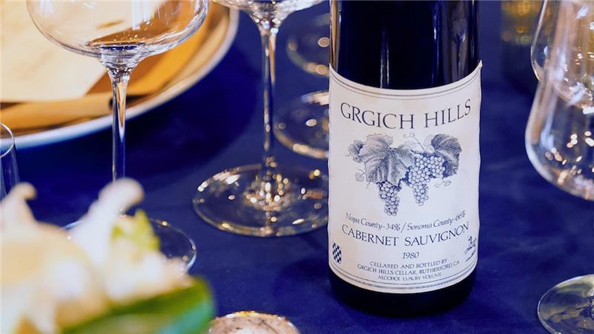 Grgich Hills Cabernet Sauvignon wine bottle on table