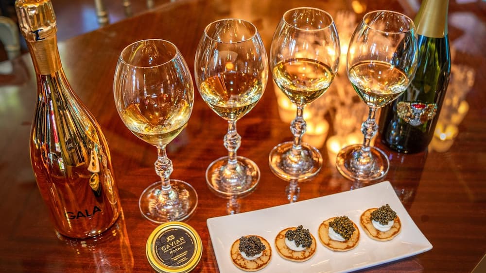 Step into an opulent salon where curated flights, Champagne, caviar, and artisan cheeses transform tasting into an experience.